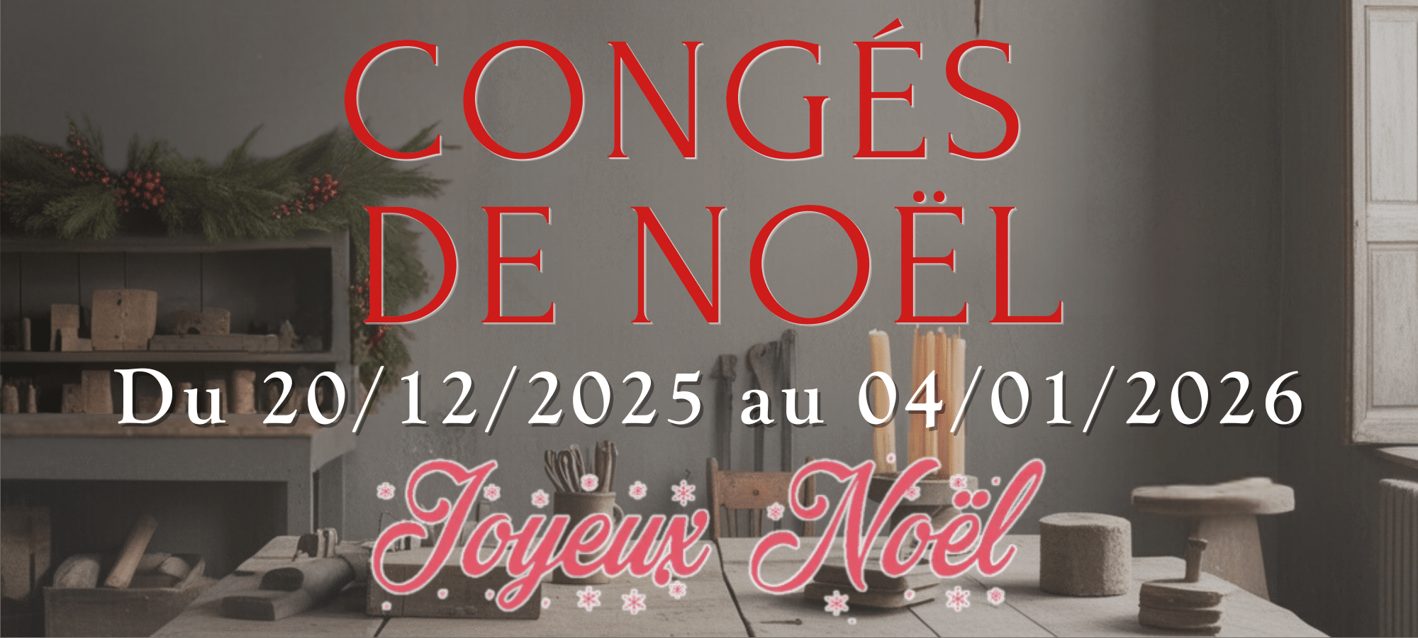 Fermeture du 20 décembre 2025 au 04 janvier 2026, Fermeture les jours fériés et ponts.